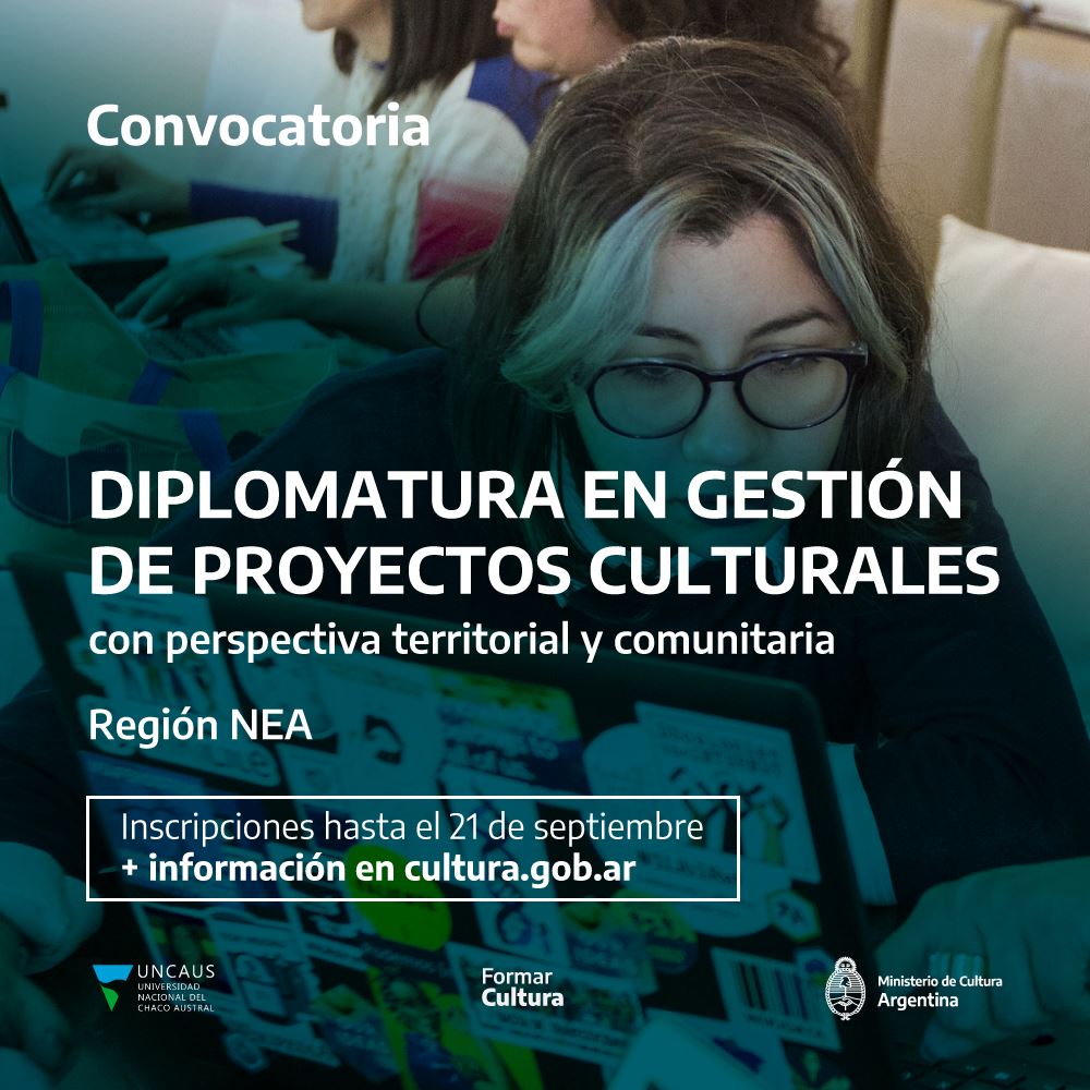 Se encuentra abierta la inscripción a la Diplomatura en “Gestión de proyectos culturales con perspectiva territorial y comunitaria”, destinada a gestores/as y hacedores/as culturales residentes en la Región NEA (Chaco, Corrientes, Formosa y Misiones).