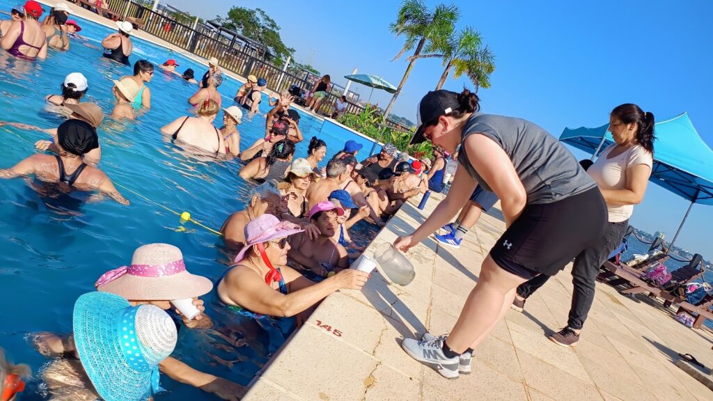 En otras oportunidades, la convocatoria superó las 100 personas, lo que refleja el creciente interés por estas actividades que promueven el bienestar físico, la recreación y el fortalecimiento de vínculos sociales. La jornada tuvo como eje principal el ‘aguagym’, guiada por profesoras capacitadas que acompañaron con ejercicios adaptados y dinámicos. Al cierre se compartió un refrigerio, generando un espacio de intercambio, conversación y camaradería.