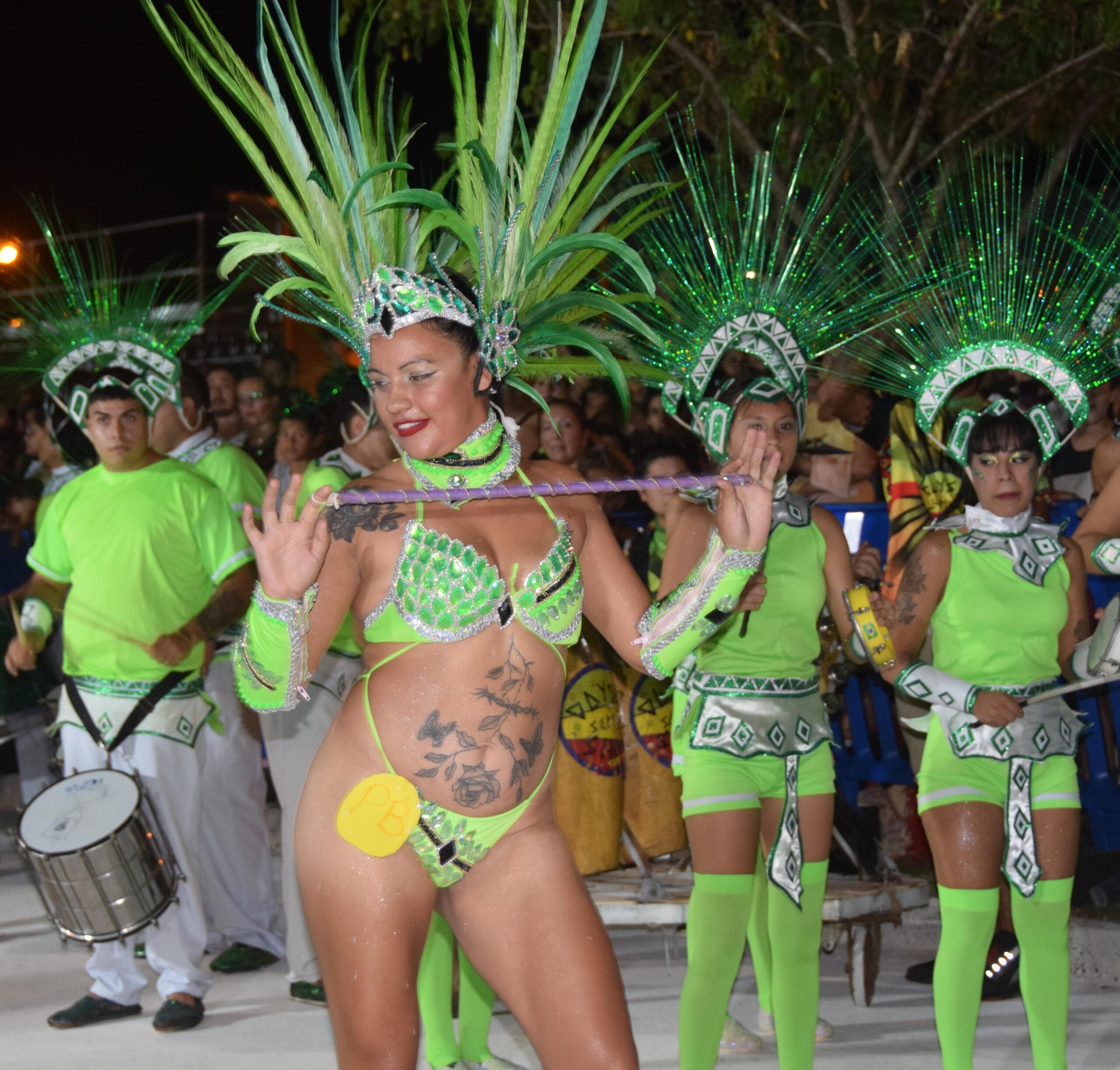 Entre cada presentación de las comparsas, que duraron cerca de 30 minutos, Al Ritmo de Loly mantenía el ambiente festivo durante 10 minutos. Promediando las 21:50, fue el turno de Daysi Samba, que presentó la temática ‘Un mundo de fantasía’. Con ritmos de cumbias y brasileños, logró hacer bailar a todos y se llevó el reconocimiento del público.
