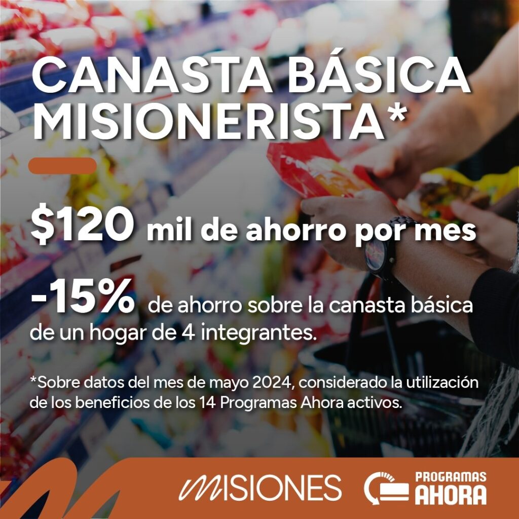 Un informe elaborado por el Ministerio de Hacienda de Misiones sobre datos del mes de mayo, relevando todas las líneas que forman parte de los Programas Ahora y cómo impactan en los ingresos mensuales, indica que utilizando de manera simultánea el conjunto de estas herramientas de financiación y reintegro la Canasta Básica se reduce en $120 mil mensuales, lo que equivale a un ahorro del 15% para una familia de 4 integrantes por mes.