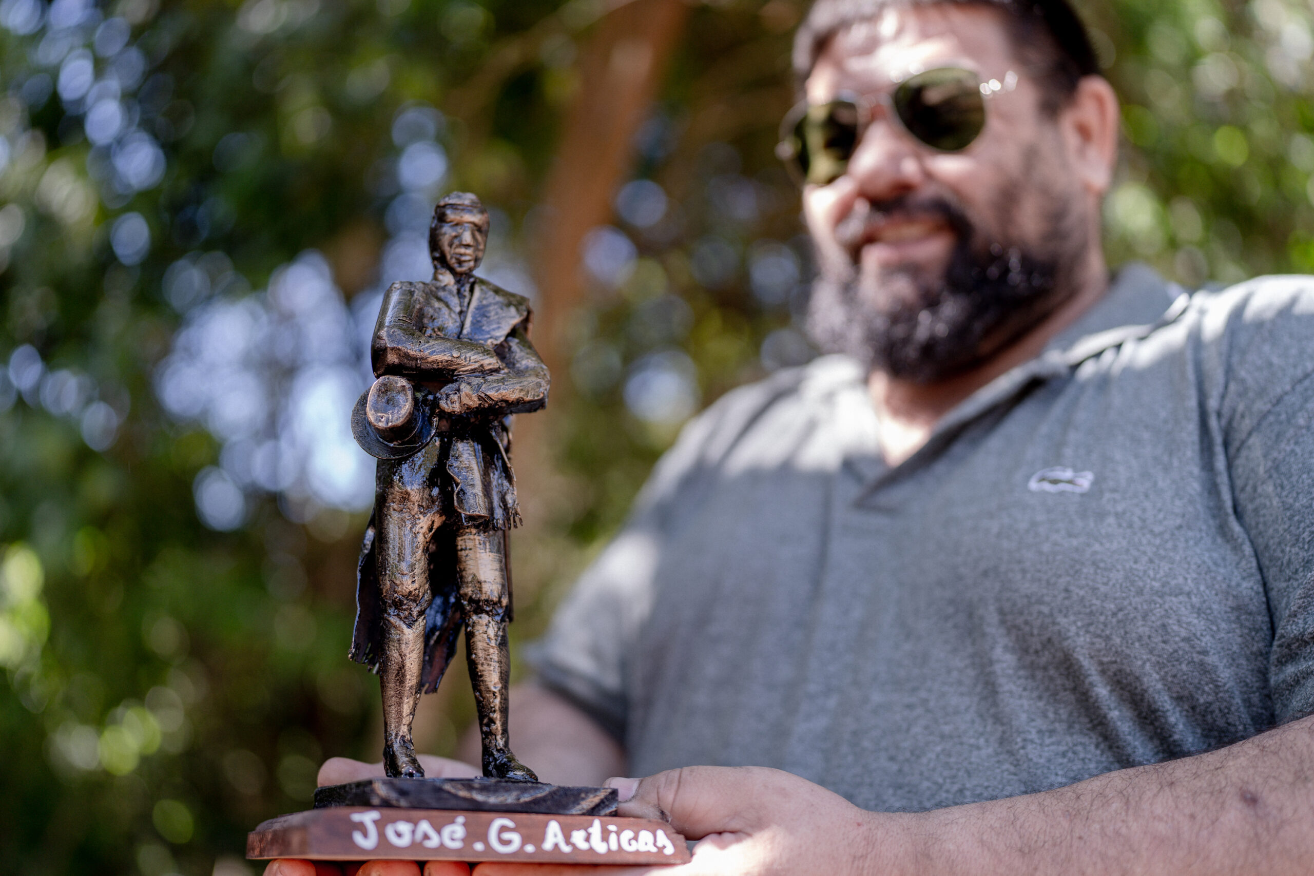 Al cierre de la ceremonia, el escultor misionero Mario “Chino” López obsequió al gobernador una escultura de Artigas realizada en hierro reciclado, como homenaje simbólico que une el arte, la memoria y la sostenibilidad.