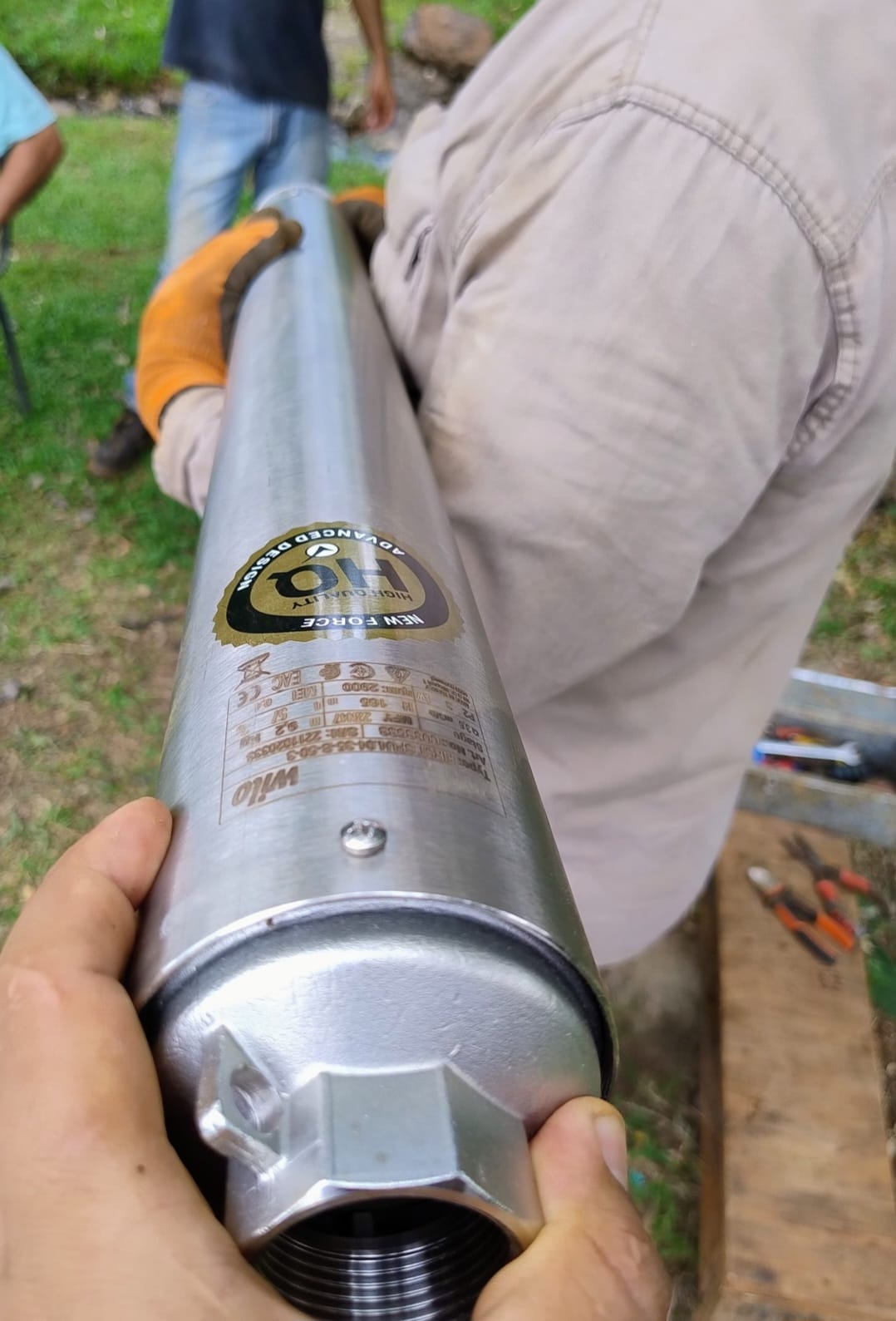 Los operarios técnicos instalaron un motor en una perforación de 170 metros de profundidad para generar un caudal de 2800 litros por hora.