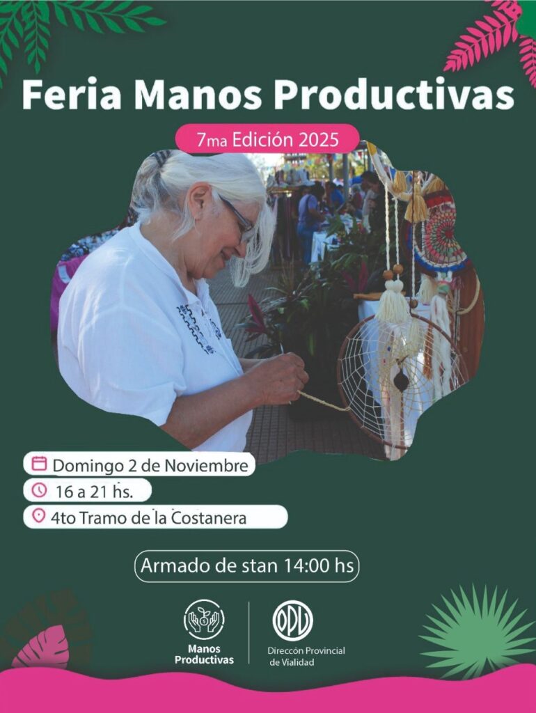 Este domingo 2 de noviembre, de 16:00 a 21:00 horas, llega la 7º edición de la feria Manos Productivas en el cuarto tramo de la Costanera.