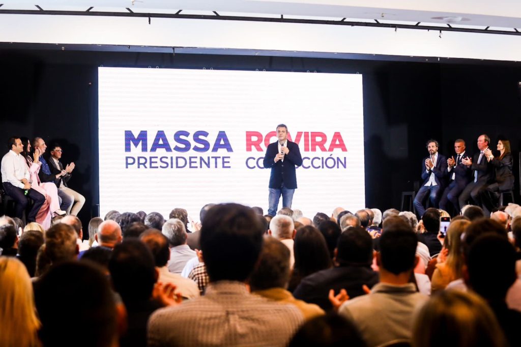 El precandidato a presidente y ministro de Economía, Sergio Massa, compartió escenario, el lunes por la noche, con los dirigentes del Frente Renovador misionero, que acompañan su postulación.