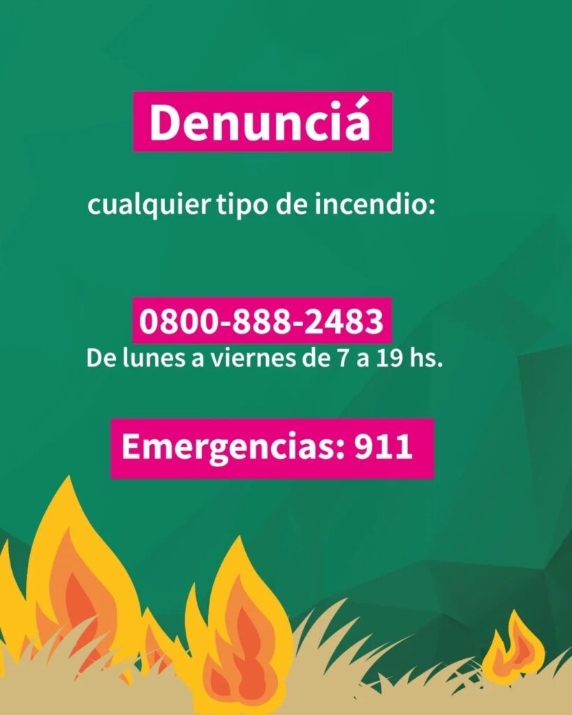 La ciudadanía debe asumir la responsabilidad necesaria para prevenir situaciones de riesgo. En caso de identificar focos de incendio, se solicita comunicarse de inmediato al número de emergencia 911, disponible las 24 horas del día. Alternativamente, se puede efectuar la denuncia correspondiente llamando al 0800-888-2483 de la Municipalidad de Posadas, en horario de lunes a viernes de 7 a 19 horas.