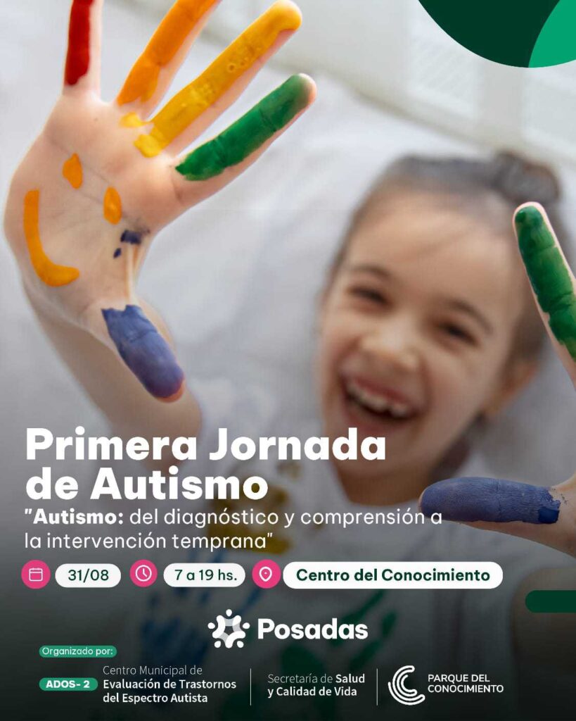 La Municipalidad de Posadas, a través de su Centro Municipal de Evaluación ADOS 2, dependiente de la Secretaría de Salud y Calidad de Vida, organiza la Primera Jornada de Autismo, que se llevará a cabo este sábado 31 de agosto desde las 09 hs en el Parque del Conocimiento. Destinada a docentes, familiares de personas con autismo y profesionales de la salud. El evento contará la disertación de destacados especialistas en la temática.