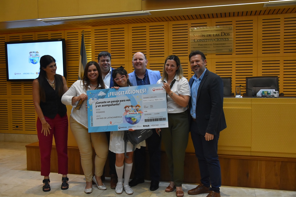 La Cámara de Representantes de la provincia abrió sus puertas al acto de premiación de la segunda edición del programa organizado por la empresa Veolia, con el fin de transformar a las nuevas generaciones desde la educación, la creatividad y la sustentabilidad. El objetivo central de este año fue la descarbonización y el cuidado del planeta. Luego de la presentación de los proyectos de los alumnos seleccionados, el jurado eligió a la ganadora: Naira Micaela Santa Cruz, de la Escuela 826.